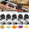 La nostra mandolina multifunzionale può tagliare il cibo a fette, strisce, julienne, cubetti senza cambiare la lama, tutto ciò che devi fare è premere il manico e ruotare le manopole.Vantaggi Senza cambiare le lame, solo ruotando le manopole, puoi tagliare il cibo in varie forme e spessori. Le lame nascoste lo rendono più sicuro.I piedini pieghevoli offrono stabilità, praticità e risparmio di spazio.