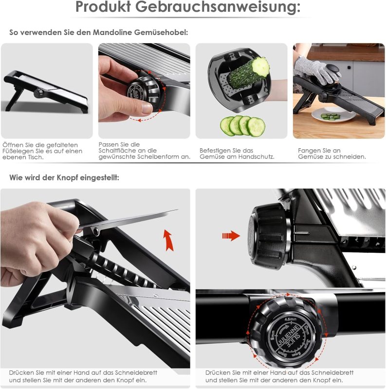 La nostra mandolina multifunzionale può tagliare il cibo a fette, strisce, julienne, cubetti senza cambiare la lama, tutto ciò che devi fare è premere il manico e ruotare le manopole.Vantaggi Senza cambiare le lame, solo ruotando le manopole, puoi tagliare il cibo in varie forme e spessori. Le lame nascoste lo rendono più sicuro.I piedini pieghevoli offrono stabilità, praticità e risparmio di spazio.
