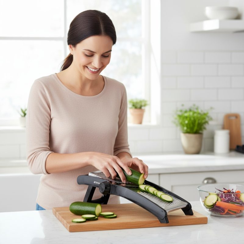 La uso ogni giorno per insalate fresche. Velocissima e sicura, non ho più paura di tagliarmi. Soldi ben spesi.